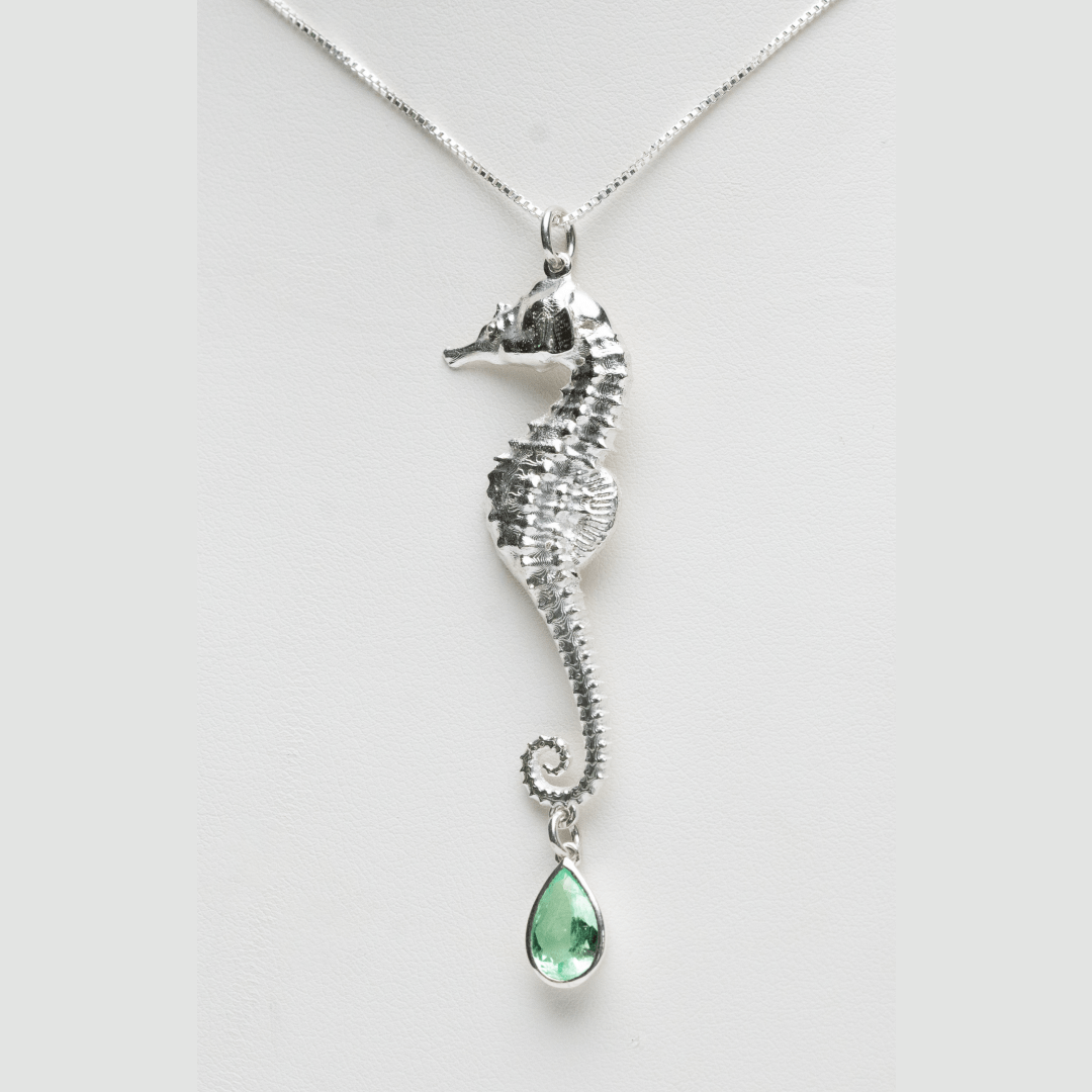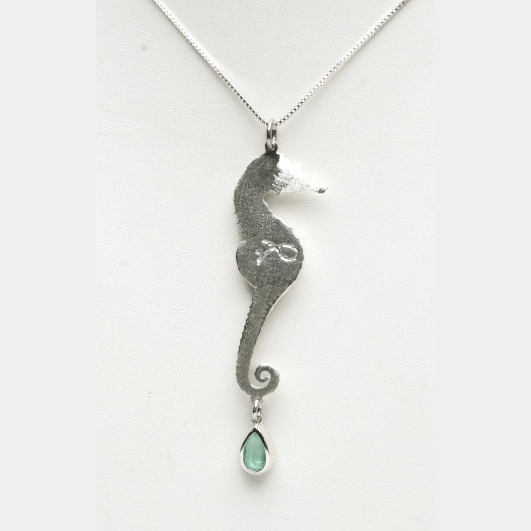 925 Silver Seahorse Pendant with Dangling Exquisite Colombian Emerald by Viviana Puello