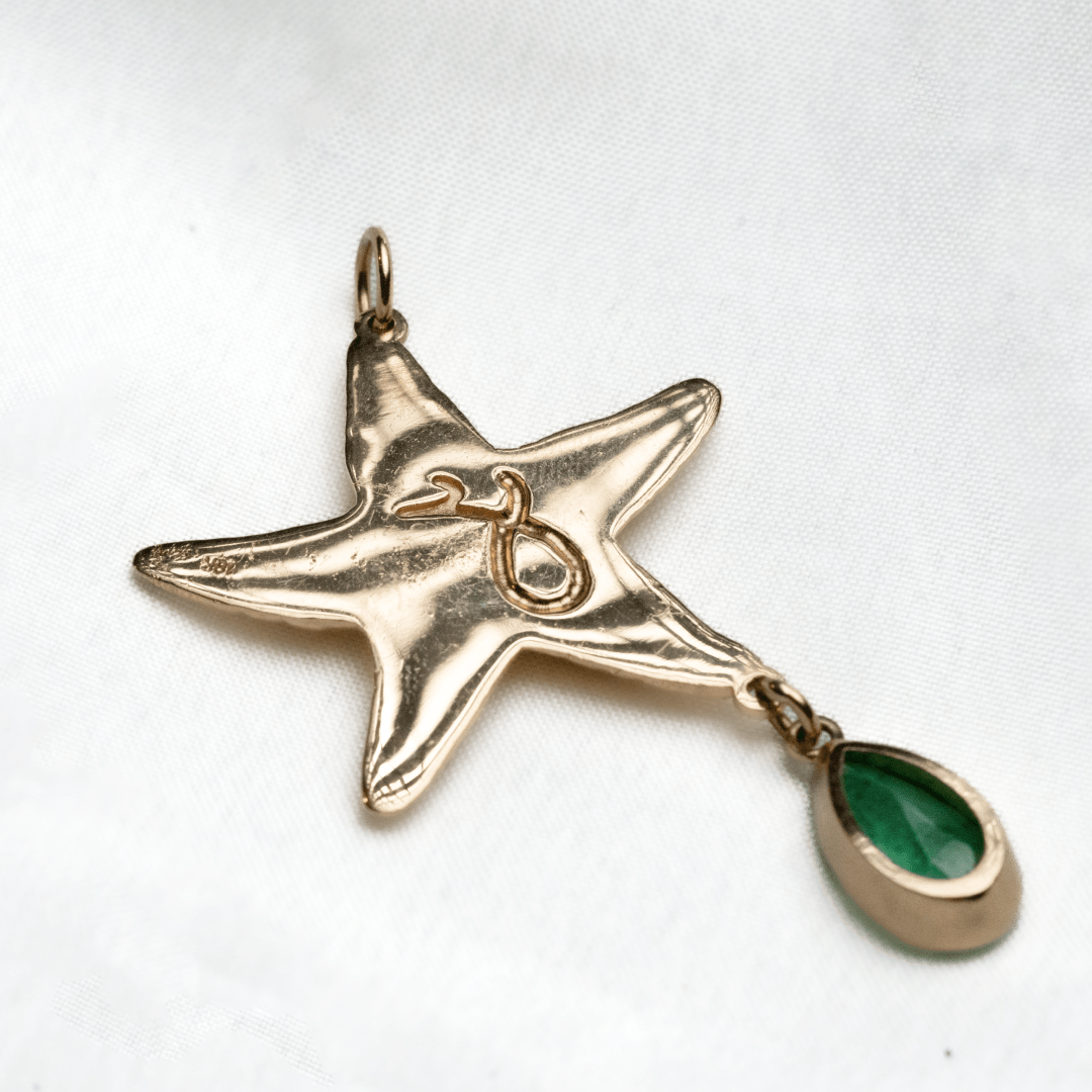 Celebrate the splendor of the cosmos and the artistry of fine jewelry with the 18K Gold Shining Star Pendant with Dangling Exquisite Colombian Emerald by Viviana Puello—a piece that captures the celestial beauty of the stars and the unmatched brilliance of one of nature’s most precious gems.